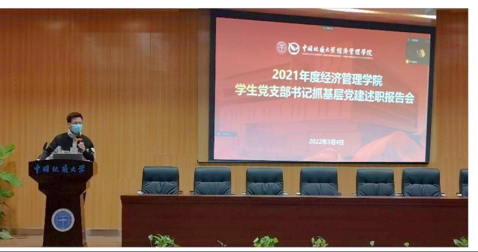 为深入学习贯彻习近平新时代中国特色社会主义思想和十九大及十九届历次中央全会精神,落实管党治党政治责任,推动全面从严治党向基层延伸,不断提升beat365官网学生党支部的工作水平,经济管理学院党委在校党委的的统一部署下,于3月4日下午在学院报告厅顺利召开2021年度学生党支部书记抓基层党建述职报告会。学院全体本科生党支部和2020级硕士研究生党部、博士研究生党支部进行了现场述职。学院党委副书记李少杰以及学工组全体辅导员老师参加述职评议会。