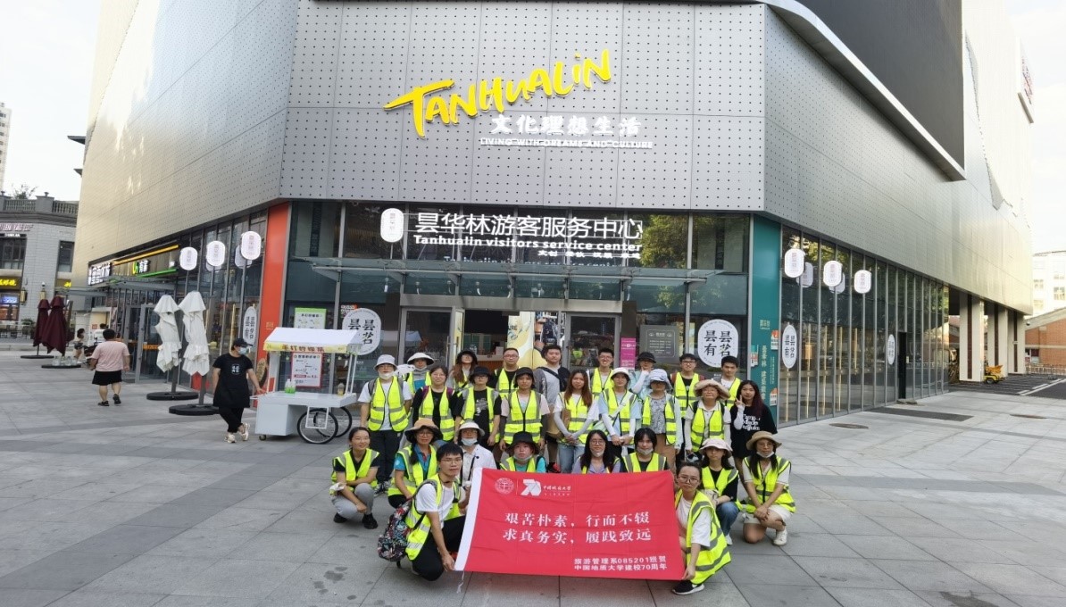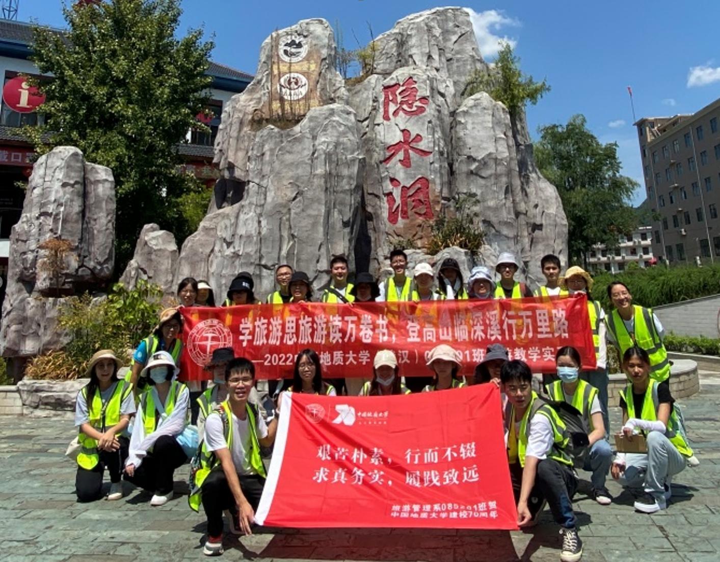 以学习、传承并发扬“艰苦朴素,求真务实”校训精神和经济管理学院的“宽信敏公,经国济民”院训精神作为实习课程思政教学的出发点,结合中国地质大学建校七十周年校庆,方案为本次实习确立了“艰苦朴素,行而不辍;求真务实,履践致远”的实习精神理念,引导同学们要在实习中,积极发扬校训精神,秉承求真,践行务实,在实习实践中理论联系实际,打好专业根基,在旅游成才路上行稳致远。并鼓励实习同学以脚踏实地的实习表现,为中国地质大学建校七十周年献贺。