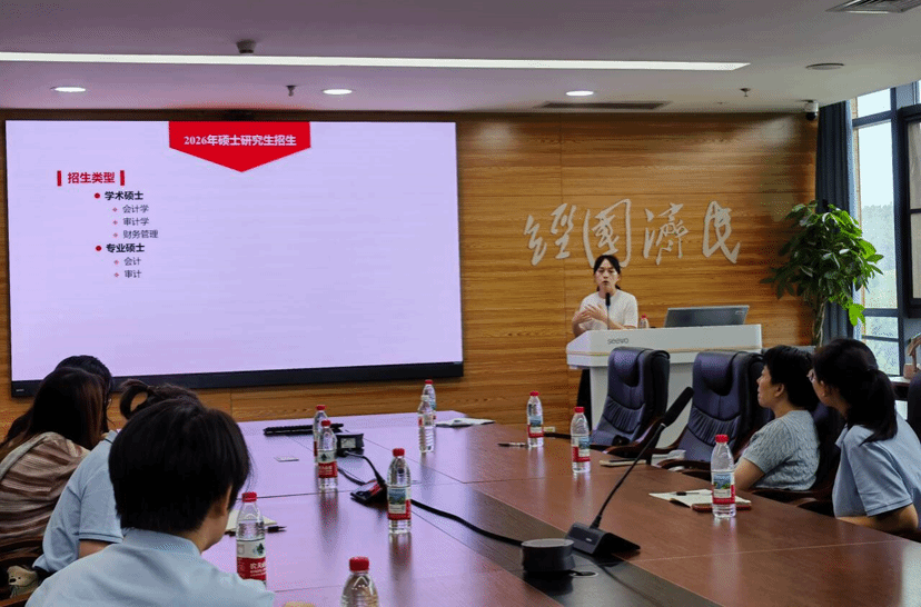 本次保研考研专题交流会通过政策解读、院校宣讲和互动答疑三个环节,为2022级会计学系本科生搭建了高质量的信息交流平台。活动既提供了权威的政策指导和最新的招生资讯,又通过师生深度交流解答了个性化问题,有效帮助同学们厘清升学方向、做好学业规划。与会学生纷纷表示,此次活动内容丰富、针对性强,对即将面临的保研考研选择具有重要的指导意义,也为后续的备考工作奠定了坚实基础。我系将持续开展此类交流活动,助力学生成长成才。