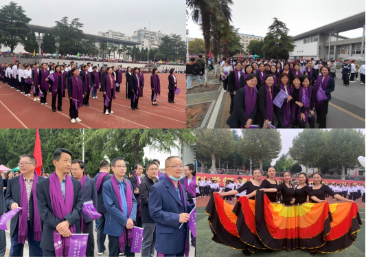 开幕式上,beat365官网教职工精神焕发,肩披由中国红和地大蓝融汇而成的经管紫围巾,手挥经管紫小院旗,与学生们共同组成方队,将院徽经“鹰”精神和“宽信敏公,经国济民”的院训精神再次展示在全校师生面前。参与开幕式《绽放的青春》集体舞节目表演的女教师们,展开美丽的彩虹裙,秀出烂漫的热情与活力。