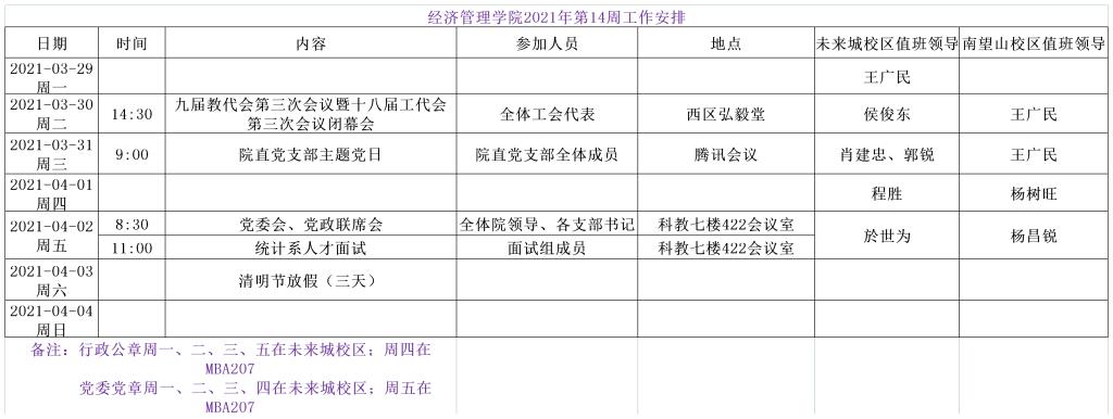 经济管理学院2021年第14周工作安排