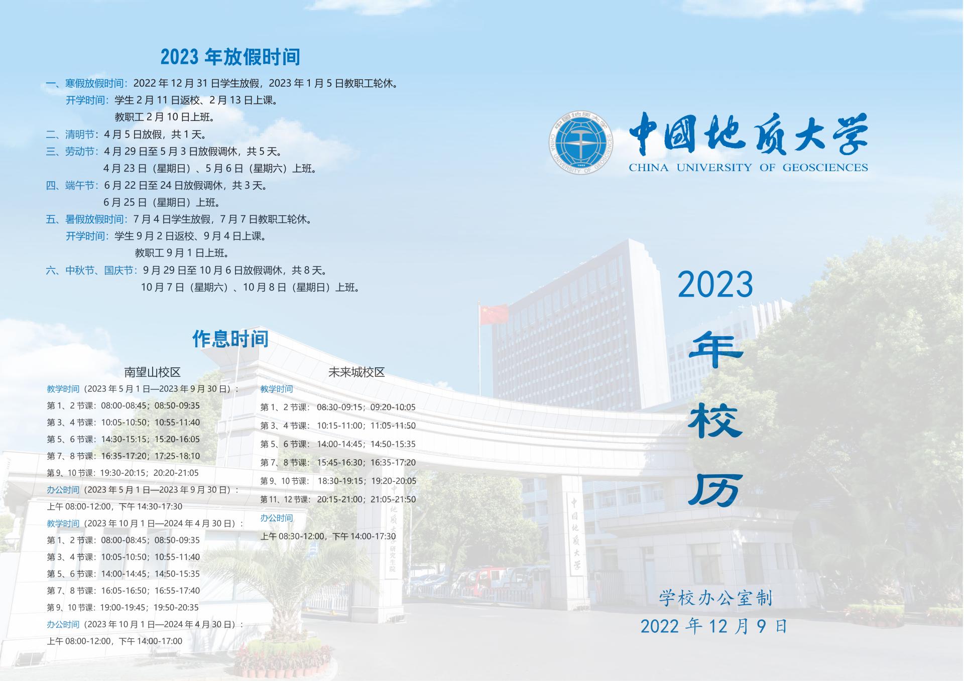 中国地质大学(武汉)2023年校历